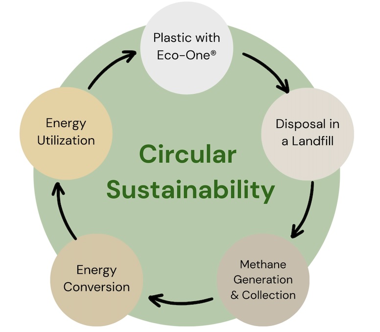 Plastics with Eco-One® will allow a traditional polymer to biodegrade within the useful life a landfill to collect and convert the methane produced as an energy source while also reducing the persistence of plastic by sheer volume within the landfill!